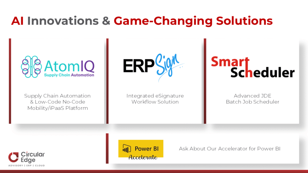 The hottest topic at this year’s conference was AI. The agenda was packed with educational sessions demonstrating AI working hand-in-hand with JDE to improve operations, reduce cost, and boost agility. Circular Edge and AtomIQ were at the center of the conversation, with customers showing exactly how they’re making AI work for them.
